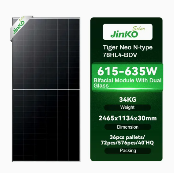 Jinko solar 620w bifacial ☀️🔋 Panneau Solaire Jinko Bifacial 635W – Tiger Neo N-Type 🔋☀️